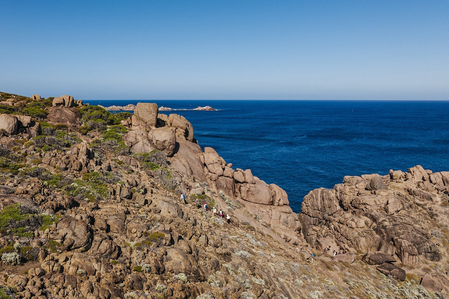 コースは、マーガレットリバーならではの変化に富んだ地形と自然美が凝縮されたルート。白砂のビーチをスタートし、世界的に知られる「ケープ・トゥ・ケープ・トラック」を経由して、海岸線や断崖、林間部、ワイルドフラワーの咲く草原、岩場など、刻一刻と表情を変える風景の中を駆け抜ける。