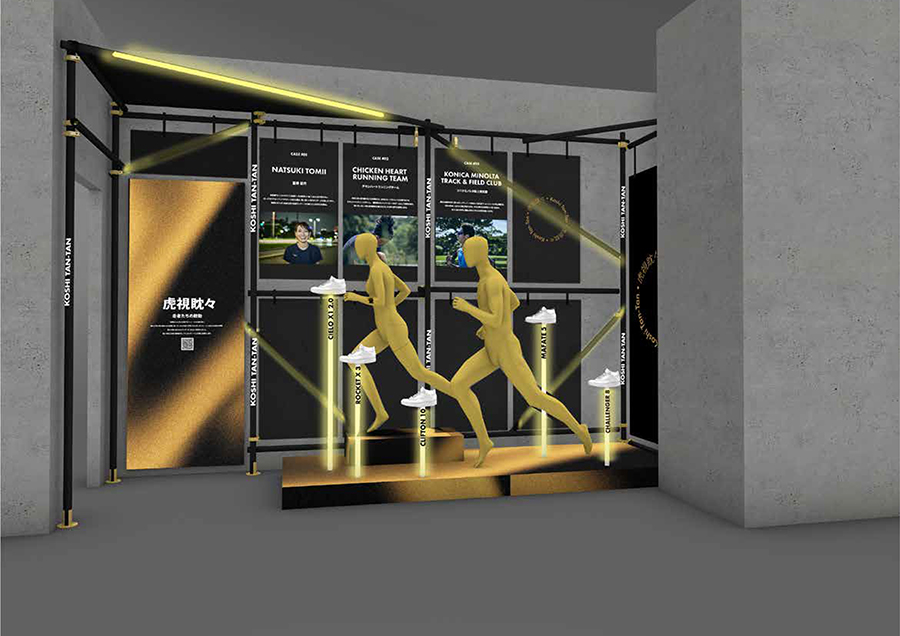ブランドスペースは、『Together We Fly Higher』をはじめとするブランドメッセージや新商品のコンセプトを体感できるフロア。オープン時には日本発のロード&トレイルのカプセルコレクション『虎視眈々 – KOSHI TAN-TAN』が展示されている。
