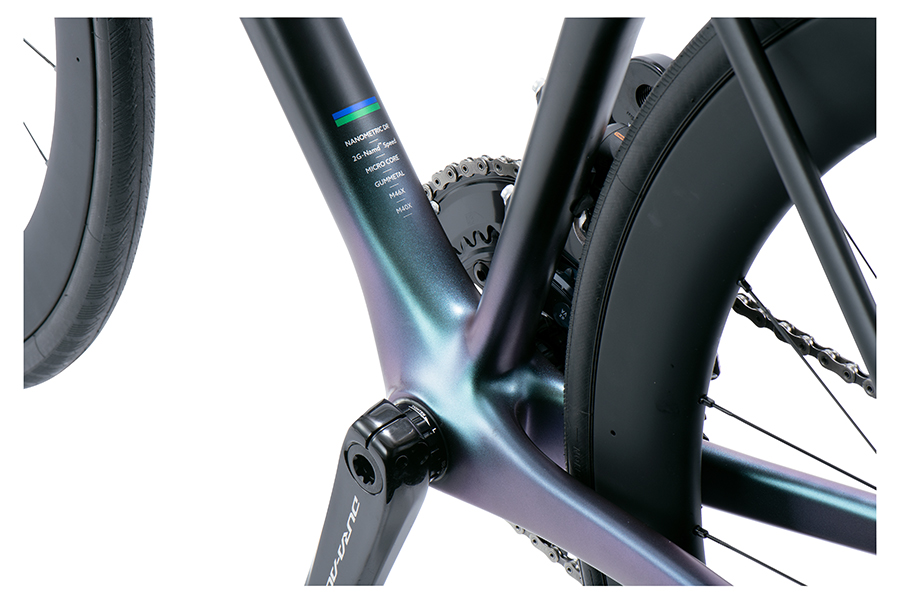 塗装も一般的なロードバイクの約半分となる塗装重量を実現した。本来、塗装の仕上がりと軽量化は相反する要素だが、1台ずつ自社工場の職人の技で仕上げている。