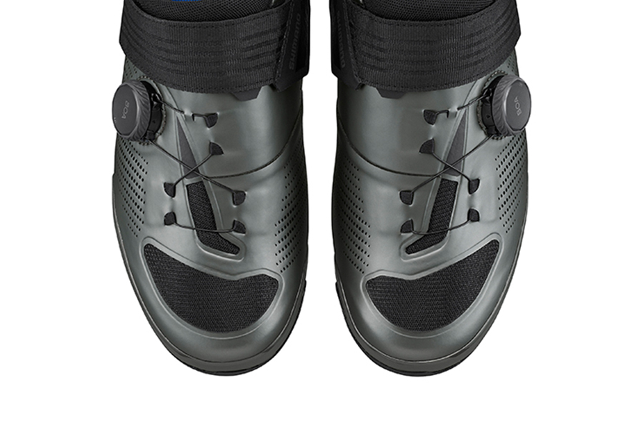 レースシーンで求められる操作性とフィット性を備えたフラッグシップモデルに、既存カラーの「ブルー」に加えて、シマノ公式サイクリングオンラインストア限定カラーとして新たに「マットガンメタル」が加わった。