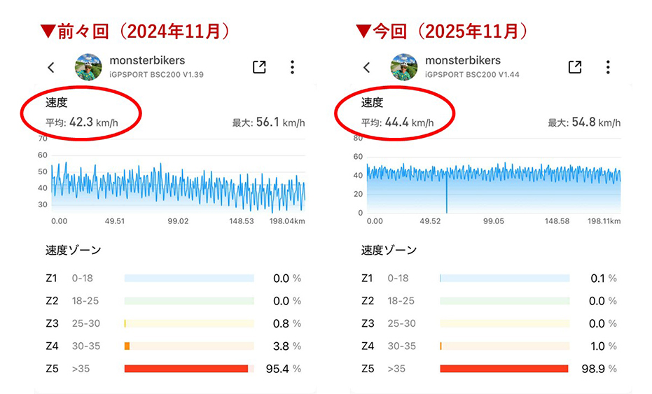 約12分短縮・平均時速約2㎞アップと、記録を伸ばすことができました。