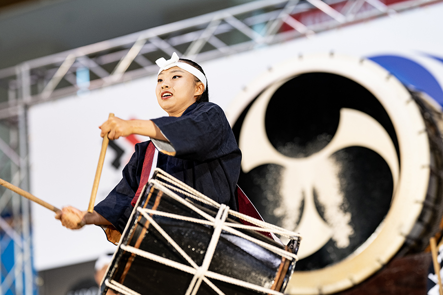 島祭りパーティーでは、小木に活動拠点を置く太鼓芸能集団「鼓童」が、選手たちの活躍を祈念したパフォーマンスを見せてくれる