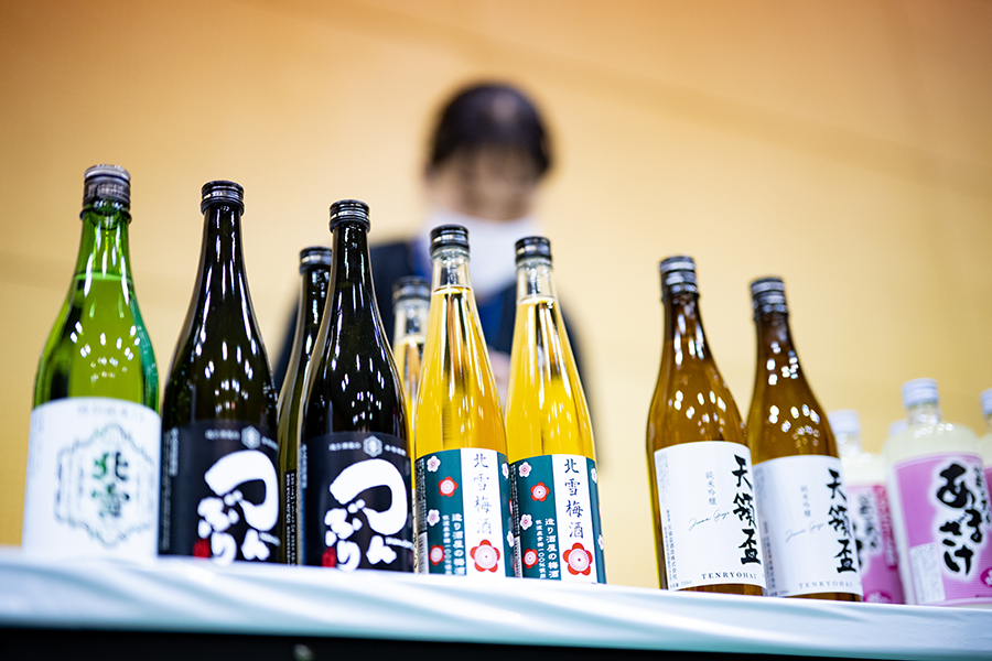 言わずと知れた米どころ・酒どころ佐渡を味わえる日本酒ラインアップも島祭りパーティーで飲み比べ。さて、お土産にはどれを?
