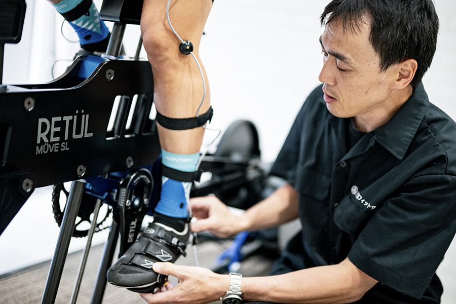 強豪エイジグルーパーの森川さんは、渡邉さんのフィッティング受けて3年目。最近の依頼は「とにかくワット(出力)を上げたい」ということ。