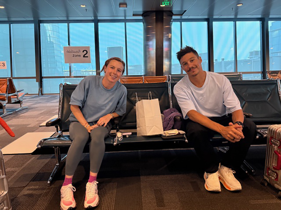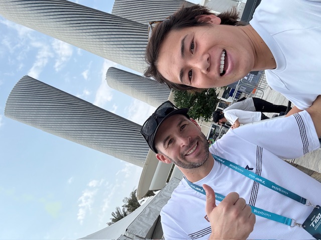 レース後はそのままドバイへ移動。空港でバイクを預けているアスリートに「さっきレースして、もう空港はタフですね」と話しかけると、「私たちは昨日だったよ」と一言。……プロでした。