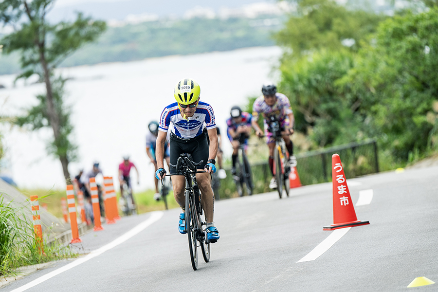 コース紹介青い海を見下ろす海岸線から、沖縄と異国情緒が共有する唯一無二の街並みへと変化する景色。刻々と変わる風景が、過酷なレース中の力になります。