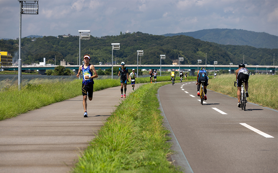 コース紹介河川敷の整備された、フラットな コース。周回コースで、ギャラリーからの応援を受けながら最後まで完走を目指して頑張れます。トライアスロン