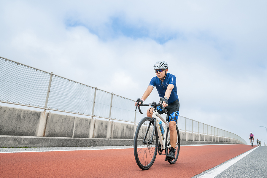 コース紹介有料道路を全面封鎖した高低差が少なくフラットな初心者向けのコースです。九十九里の海を臨む雄大な景観です。