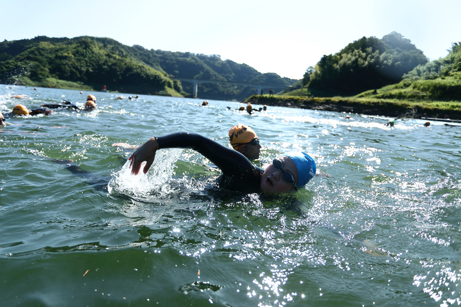 スイムは、一級河川・斐伊川上流に造られたダム湖「さくらおろち湖」を泳ぎます。