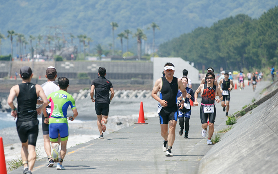 水質の良い用宗海岸を泳ぎ、桃畑や公園内をバイクで周回。ランは安倍川沿いを走り天気が良ければ富士山を拝める。事前講習会も充実しており初心者にも優しい大会。シーズン後半にデビューしたい、という人にもオススメ。